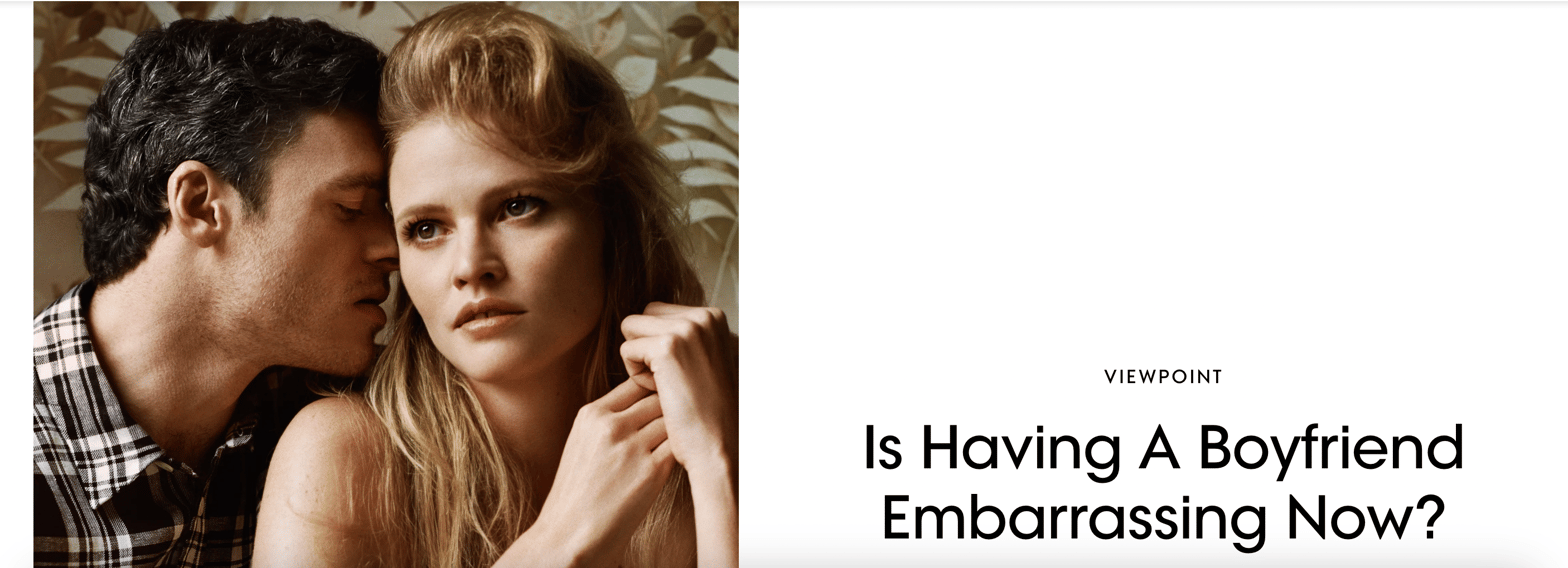 Une meuf de British Vogue s’est posé une question cette semaine : Est-ce devenu embarrassant d’avoir un petit ami ? Et, ce faisant, elle a résumé toute la ligne éditoriale de ma présence sur Instagram.
